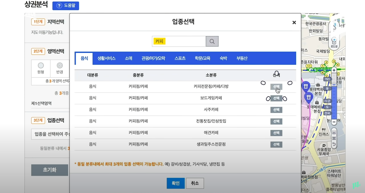 3단계인 업종 선택을 클릭해서 카페를 선택합니다.