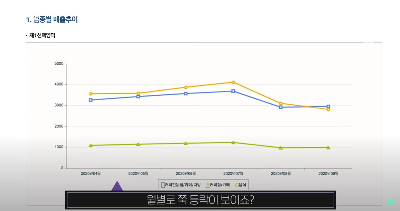 또 매출 분석란에서는 월별 등락 및 매출액을 볼 수 있습니다.